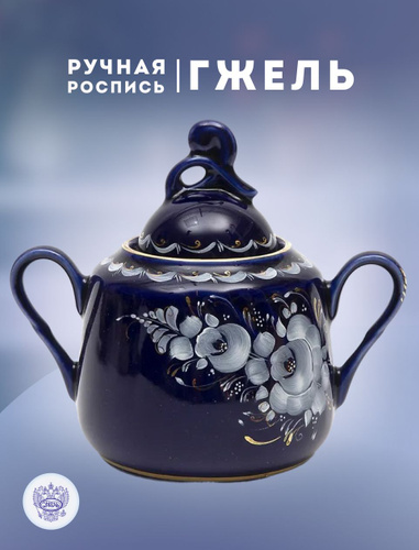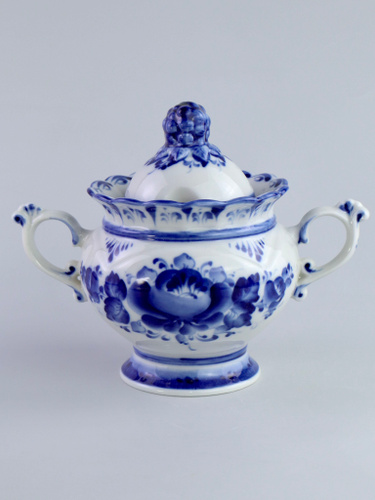 Сахарница "Графиня" 400 мл. Кобальтовая глазурь, краски, золото. Объединение Гжель. Фарфор.