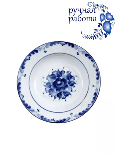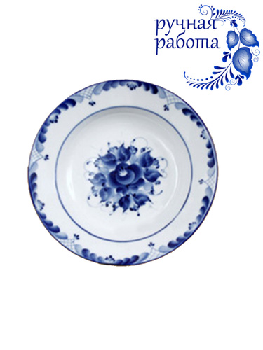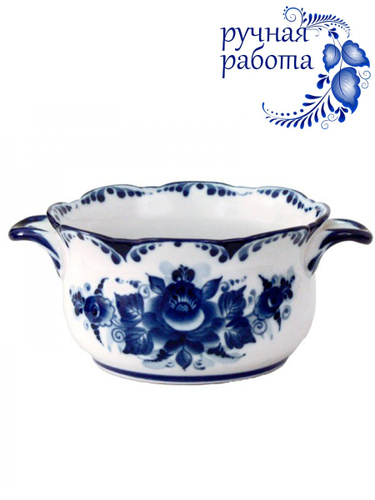 Бульонница. Галактика г.Гжель. Форма "Рябинушка". Гжельская роспись. Твердый фарфор. 450 мл.