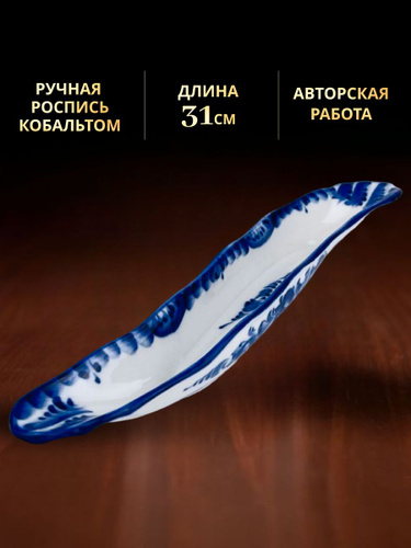 Подставка для ложек "Чудо-рыба", длина 18 см. Галактика Гжель. Ручная работа. Фарфор.