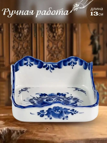 Салфетница "Комфорт", высота 4,5 см. Галактика Гжель. Ручная работа. Фарфор.