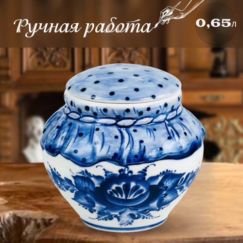 Медовница "Горшочек", 0,65 л. Галактика Гжель. Ручная работа. Фарфор.