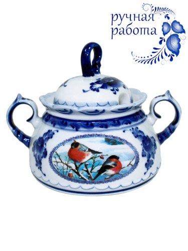 Сахарница. Галактика г.Гжель. Подарочная "Снегири".