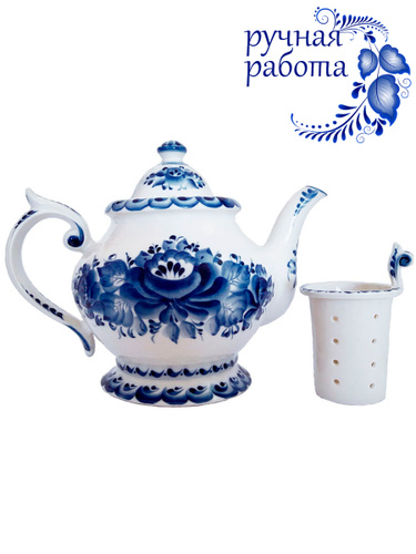 Чайник заварочный с ситечком 950 мл "Удовольствие". Галактика г.Гжель. Фарфор, ручная работа