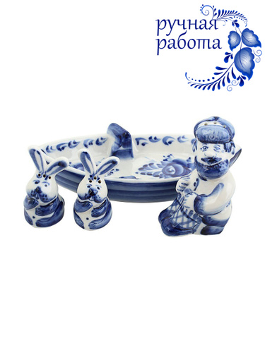 Набор для специй. Галактика г. Гжель. "Дед Мазай и зайцы". 4 предмета.