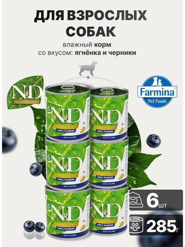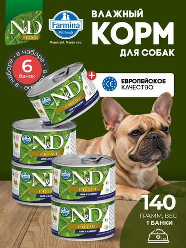 Farmina N&D Prime, Lamb&Blueberry, влажный корм для собак Н&Д прайм с ягненком и черникой, 140 г х 6 шт