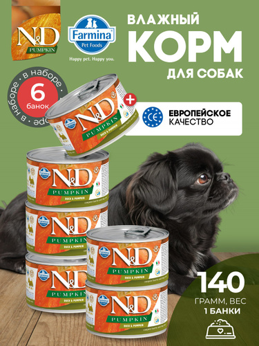 Консервированный влажный корм, Farmina N&D Pumpkin, Н&Д для собак с Тыквой, утка мини Фармина 140 г - 6 шт