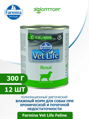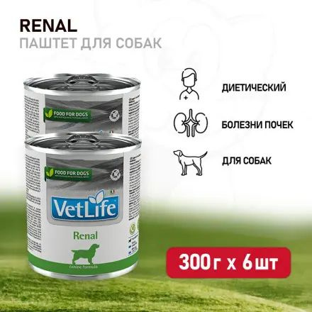 Farmina Vet Life Renal, диетический влажный корм для собак ренал при почечной недостаточности, паштет, 300 г х 6 шт