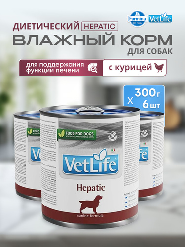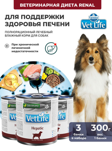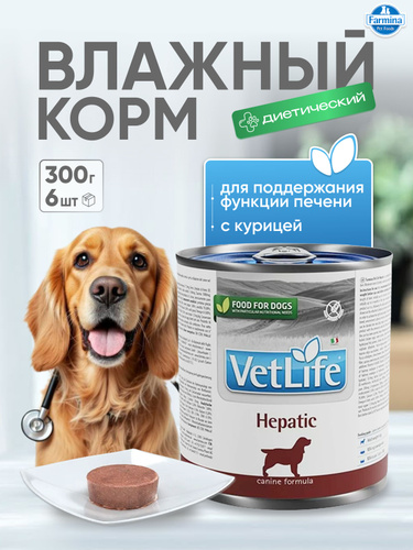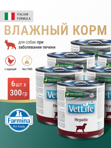 Vet Life При болезнях печени, ХПН Для собак 6шт х 300гр Влажный диетический корм farmina hepatic гепатик