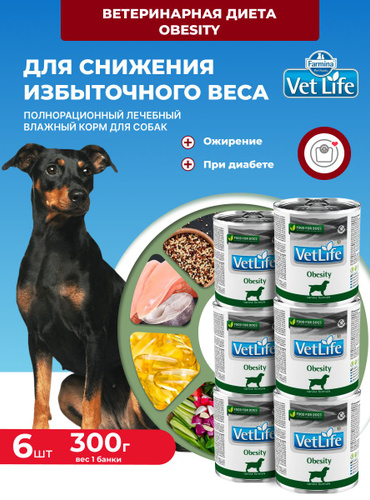 Диетический влажный корм для собак 6 шт 300г Контроль веса, ожирение, избыточный вес, Farmina Вет Лайф Обесити vet life obesity