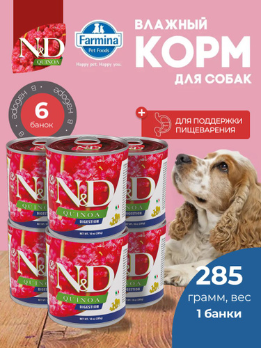 Консервированный влажный корм, Farmina N&D Quinoa, Н&Д для собак с Киноа, для поддержки пищеварения Фармина 285 г - 6 шт