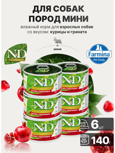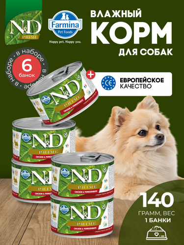 Farmina N&D Prime, Chicken&Pomegranate, влажный корм для собак пород мини Н&Д прайм с курицей и гранатом, 140 г х 6 шт