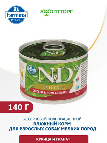 Влажный корм Farmina N&D Dog Prime Adult Mini консервы для взрослых собак мелких пород с курицей и гранатом, 140 г