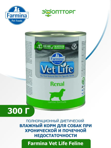 Диетический влажный корм для собак 3шт х 300гр При заболеваниях почек, почечной недостаточности, ХПН, МКБ Вет Лайф Ренал farmina Vet Life Renal