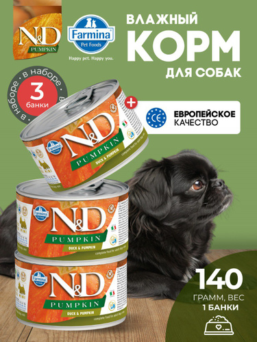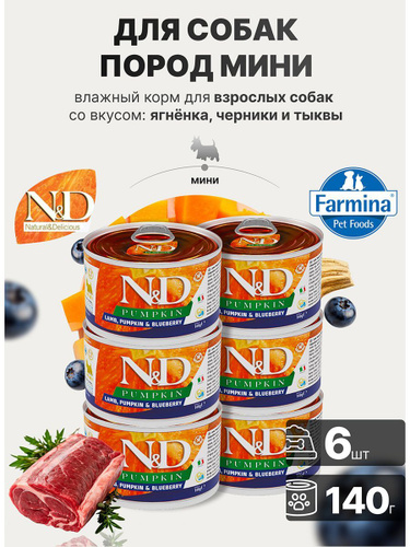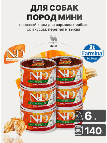 Farmina N&D Pumpkin, Quail&Pumpkin, влажный корм для собак пород мини Н&Д с тыквой и перепелом, 140 г х 6 шт