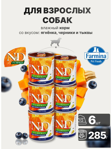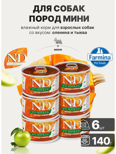 Консервированный влажный корм, Farmina N&D Pumpkin, Н&Д для собак с Тыквой, оленина Фармина 285 г - 6 шт