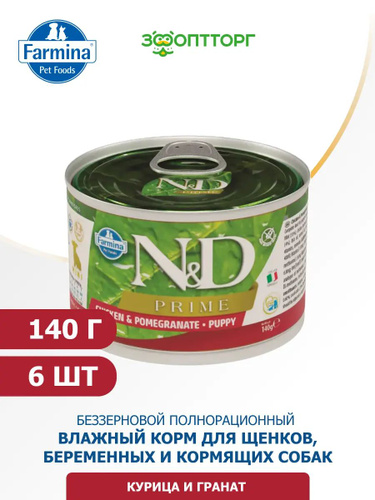 Влажный корм Farmina N&D Dog Prime Puppy Mini консервы для щенков мелких пород с курицей и гранатом, 140 г х 6 шт.