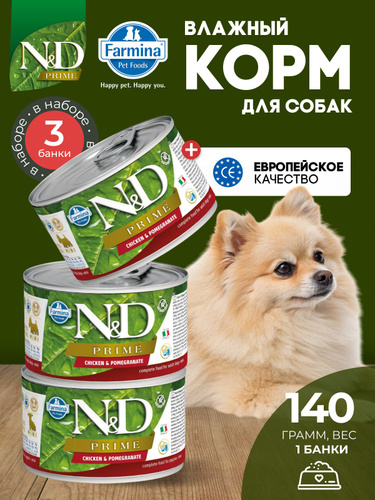 Консервированный влажный корм, Farmina N&D Prime, Н&Д для собак Прайм, курица и гранат мини Фармина 140 г - 3 шт