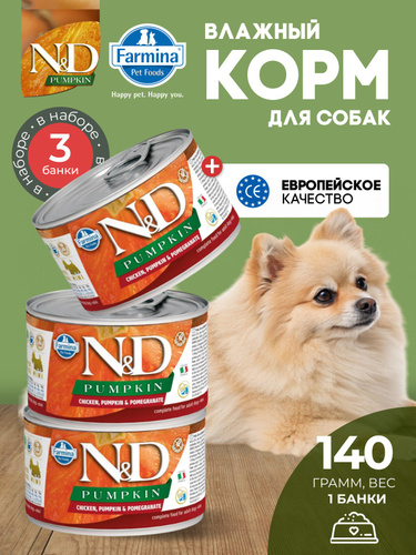 Консервированный влажный корм, Farmina N&D Pumpkin Н&Д для собак с Тыквой, курица и гранат мини Фармина 140 г - 3 шт