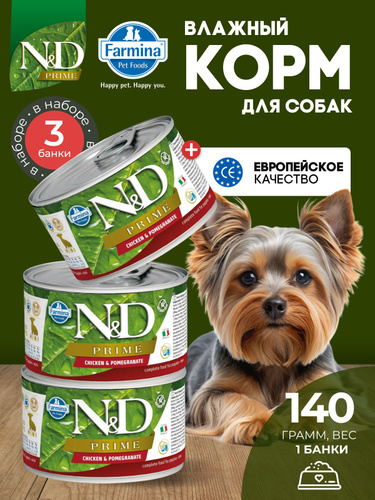 Консервированный влажный корм, Farmina N&D Prime, Н&Д для собак Прайм, курица и гранат для щенков мини Фармина 140 г - 3 шт