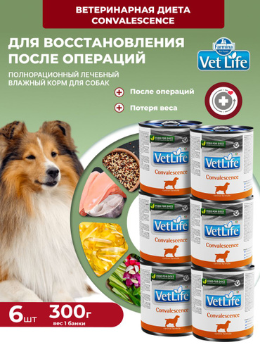 Влажный диетический корм Vet Life Farmina Для собак, Вет Лайф паштет конвалесценсе Фармина 300 г - 6 шт Convalescence Восстановление после болезни, после операции, для ослабленных