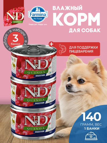 Консервированный влажный корм, Farmina N&D Quinoa, Н&Д для собак с Киноа, для поддержки пищеварения мини Фармина 140 г - 3 шт
