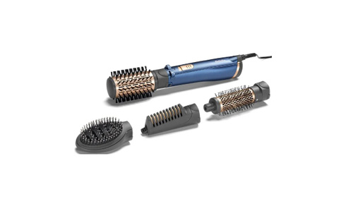 BaByliss Фен-щетка для волос AS136E 1000 Вт, скоростей 2, кол-во насадок 4, бежевый, синий