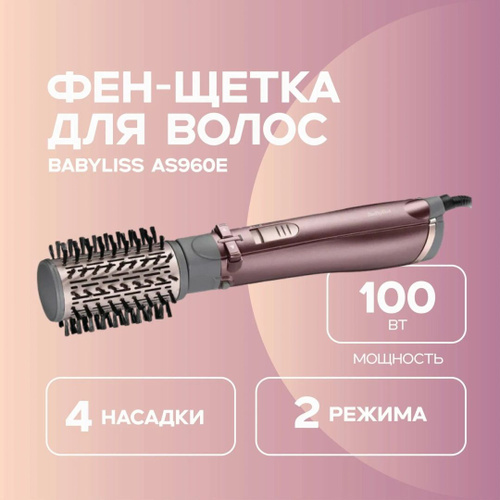 BaByliss Фен-щетка для волос AS960E 1000 Вт, кол-во насадок 2, лиловый