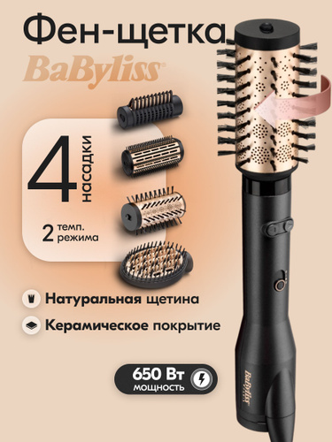 BaByliss Фен-щетка для волос AS970E 650 Вт, скоростей 1, кол-во насадок 4, черный