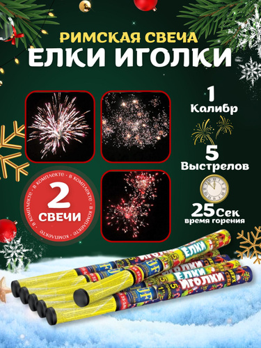 Римская свеча Елки-Иголки 5 выстрелов калибром 1 Набор из 2 штук