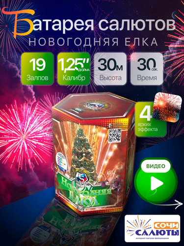 Батарея салютов (Фейерверк) Новогодняя елка (1,25" калибр х 19 залпов х 25 сек время х 2 эффекта ) малый салют