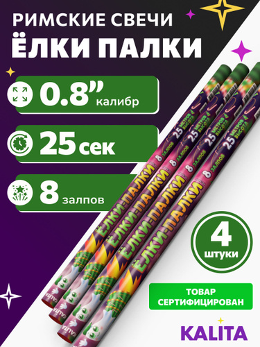 Римские свечи Елки Палки 8 залпов 8 мм калибр, 4шт в наборе