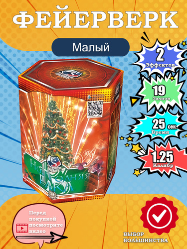 Салют Фейерверк "Новогодняя ёлка" калибр 1,25" дюйма, 19 залпов, до 25 секунд. Премьер Салют