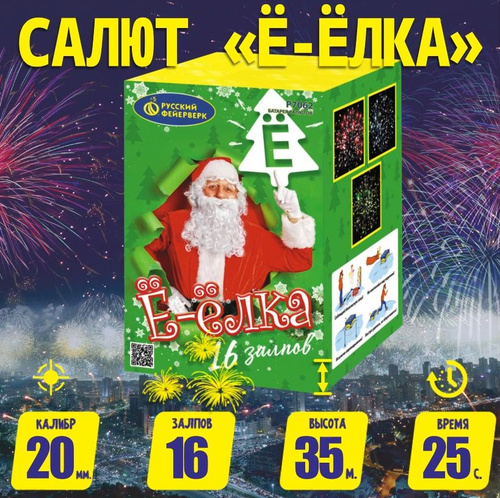 Салют "Е-Ёлка" 16 залпов, калибр(дюйм) 0.8, P7062 Русский Фейерверк