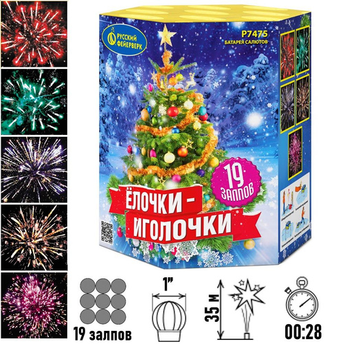 Батарея салютов Русский фейерверк Елочки- иголочки. Р7475 19 х 1"