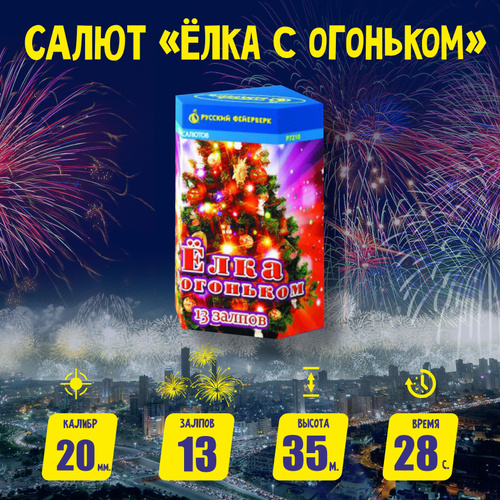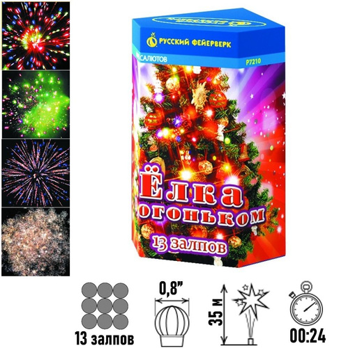 Фейерверки и салюты Р7210 Ёлка с огоньком / 13 залпов, калибр 0,8 дюймов, ТМ "Русский Фейерверк"