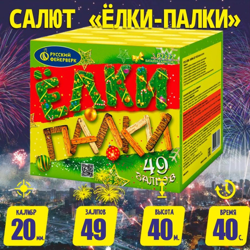 Фейерверки и салюты Р7327 Ёлки-палки / 49 залпов, калибр 0,8 дюйма, ТМ "Русский Фейерверк"