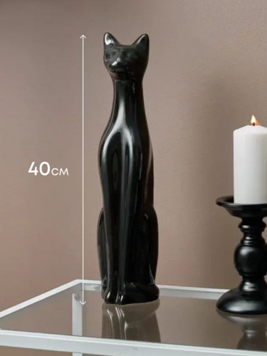 Статуэтка Кошка черная, 40см, интерьерная фигурка напольная