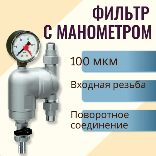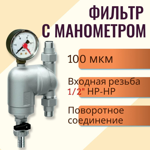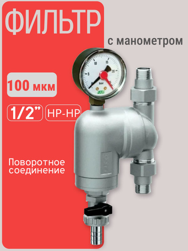 Фильтр 100мкм с манометром Поворотное соединение 1/2" НР-НР FА 39A4 12100
