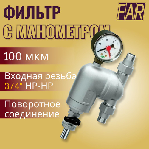 Фильтр FAR с манометрами, 100мкм, НР-НР 3/4"