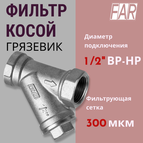 Фильтр косой FAR латунный, 300мкм, ВР-ВР 1/2" (FA 2390 12300)