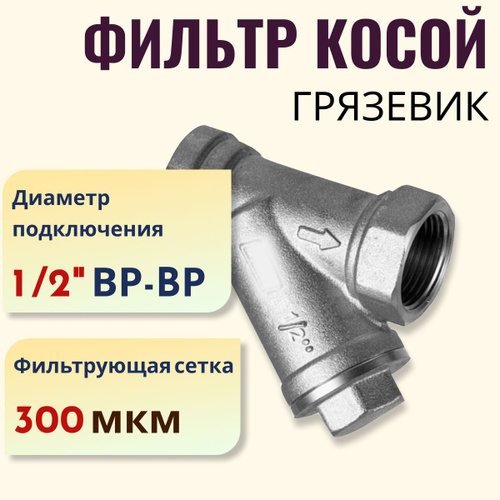 Фильтр грязевик 1/2" механической очистки (косой) ВР-ВР 300 мкм
