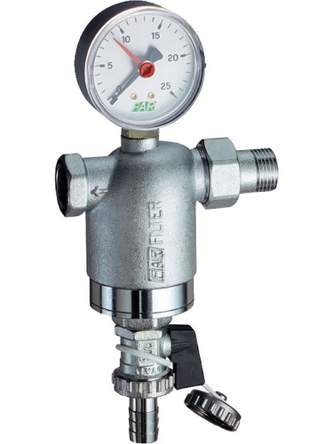 Фильтр FAR самопромывной 3/4 НР-НР, с манометром, 100мкм, Max: 95 C, 25 бар FA 3944 34100