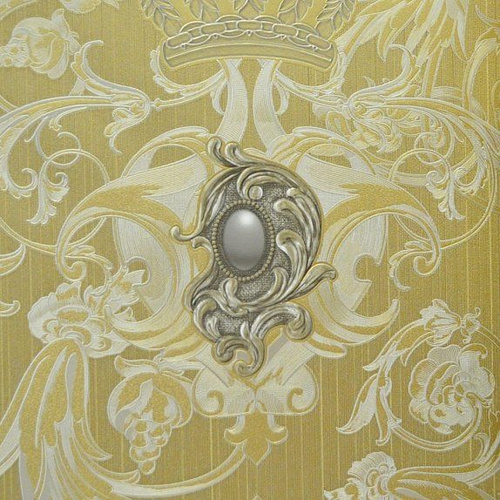 Обои золотистые ромбы с узорами в классическом стиле Rasch Florentine 488364 ширина 53 см, виниловые, моющиеся, с подбором, Германия