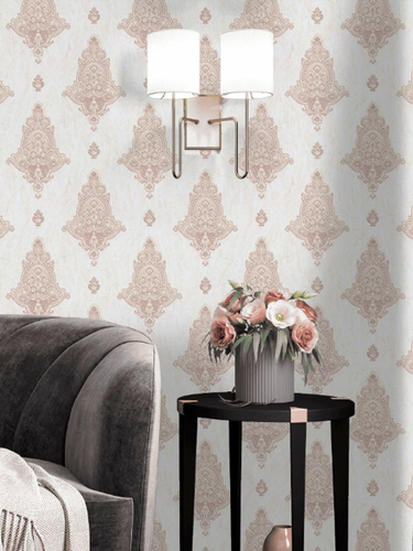 Обои бордово-винные Дамаск на кремово бежевом фоне в классическом стиле Rasch Souvenir 516234 ширина 53 см, виниловые, моющиеся, с подбором, Германия