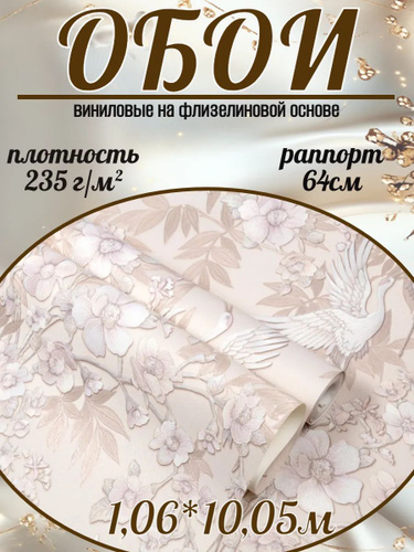 Обои метровые горячего тиснения, винил на флизелине, "Айрис", в стиле Прованс, в спальню, гостиную, детскую, кухню, 10*1.06м.