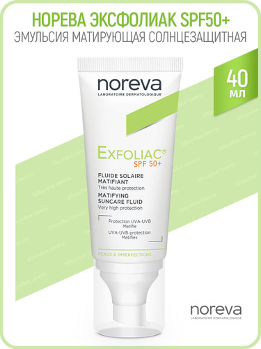 Noreva Exfoliac Эмульсия Матирующая, солнцезащитная для лица SPF 50+, 40 мл (Норева Эксфолиак для жирной и проблемной кожи)