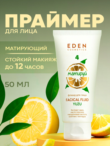 EDEN YUZU Праймер для лица под макияж матирующий для жирной и комбинированной кожи, 50 мл
