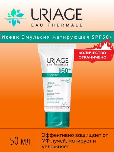 URIAGE (Урьяж), Hyseac (Исеак) Эмульсия солнцезащитная для жирной и комбинированной кожи SPF 50+ 50 мл