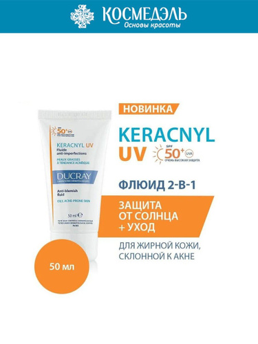 Ducray Флюид против несовершенств жирной кожи, склонной к акне Keracnyl SPF50+, 50 мл