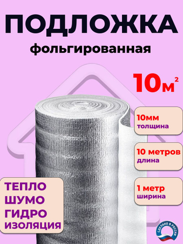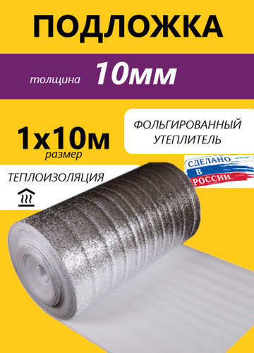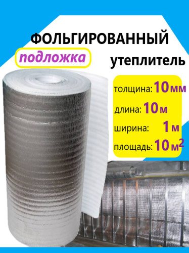 Подложка 1х10м 10мм фольгированный утеплитель, теплоизоляция, вспененная